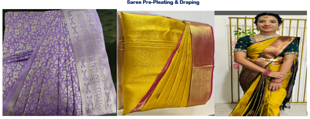 Our team of experienced beauticians specializes in everything you need—from flawless bridal makeup to elegant saree pre-pleating and draping.